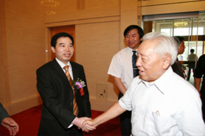 樊字疗法的发明人樊长喜先生在人民大会堂受到了九届全国人大常委会副委员长周光召的亲切接见